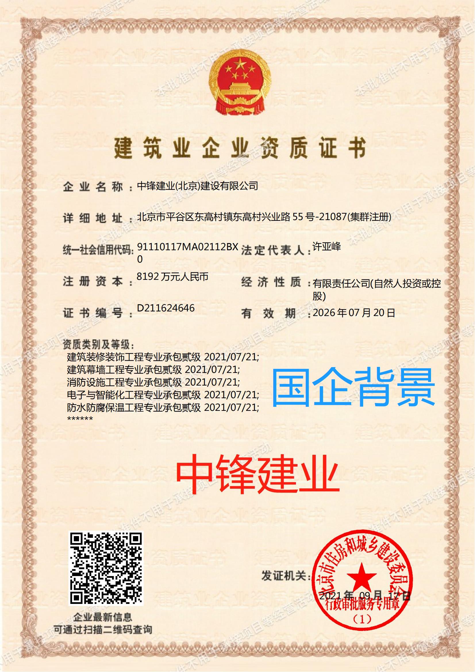 中鋒建業(yè)(北京)建設(shè)有限公司歡迎您工程資質(zhì)加盟分公司 中鋒建業(yè)(北京)建設(shè)有限公司備案信息 企查查中鋒建業(yè)(北京)建設(shè)有限公司信息查詢 住建部中鋒建業(yè)(北京)建設(shè)有限公司資質(zhì)查詢24小時(shí)免費(fèi)咨詢
