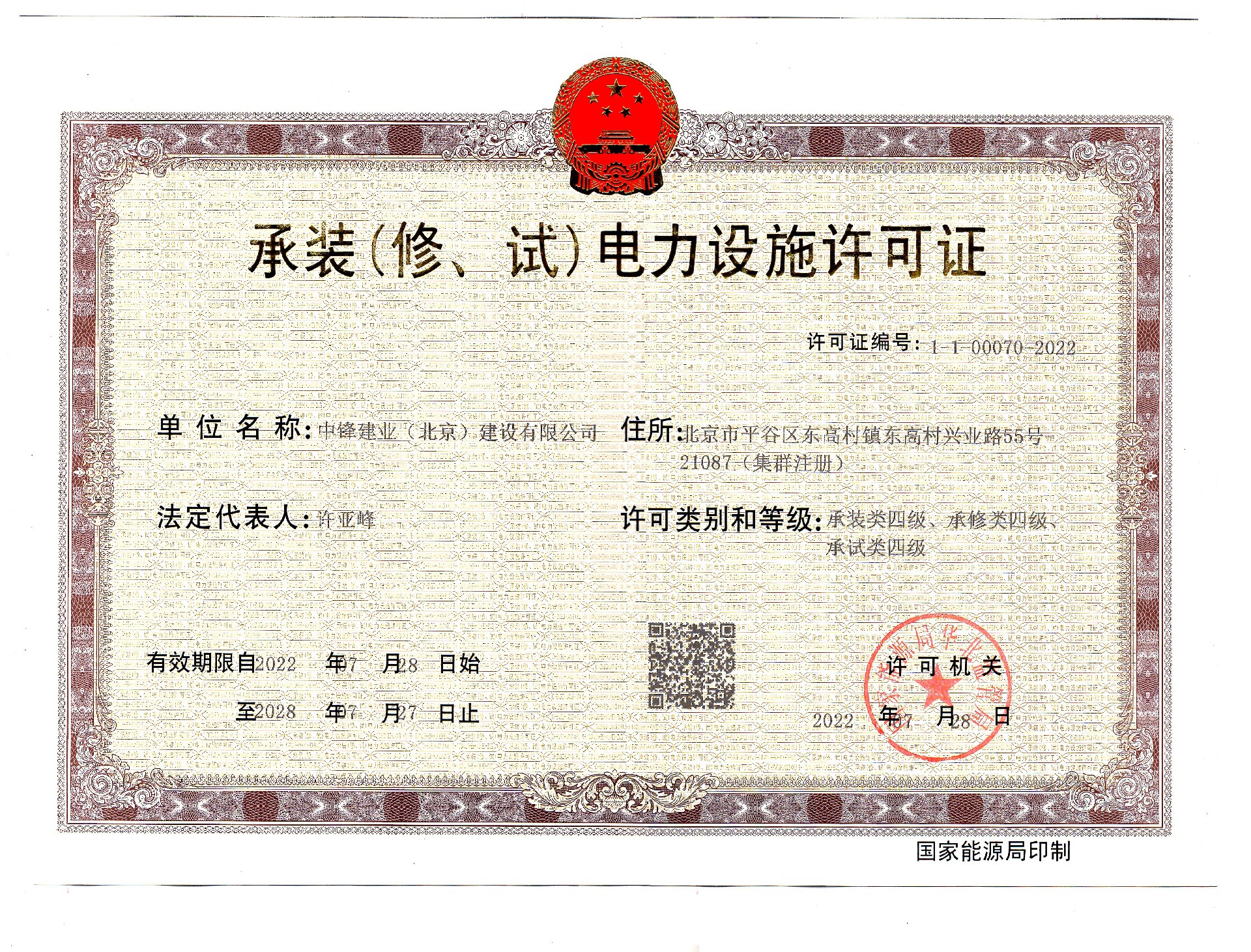 中鋒建業(yè)(北京)建設(shè)有限公司資質(zhì)范圍及等級(jí):
