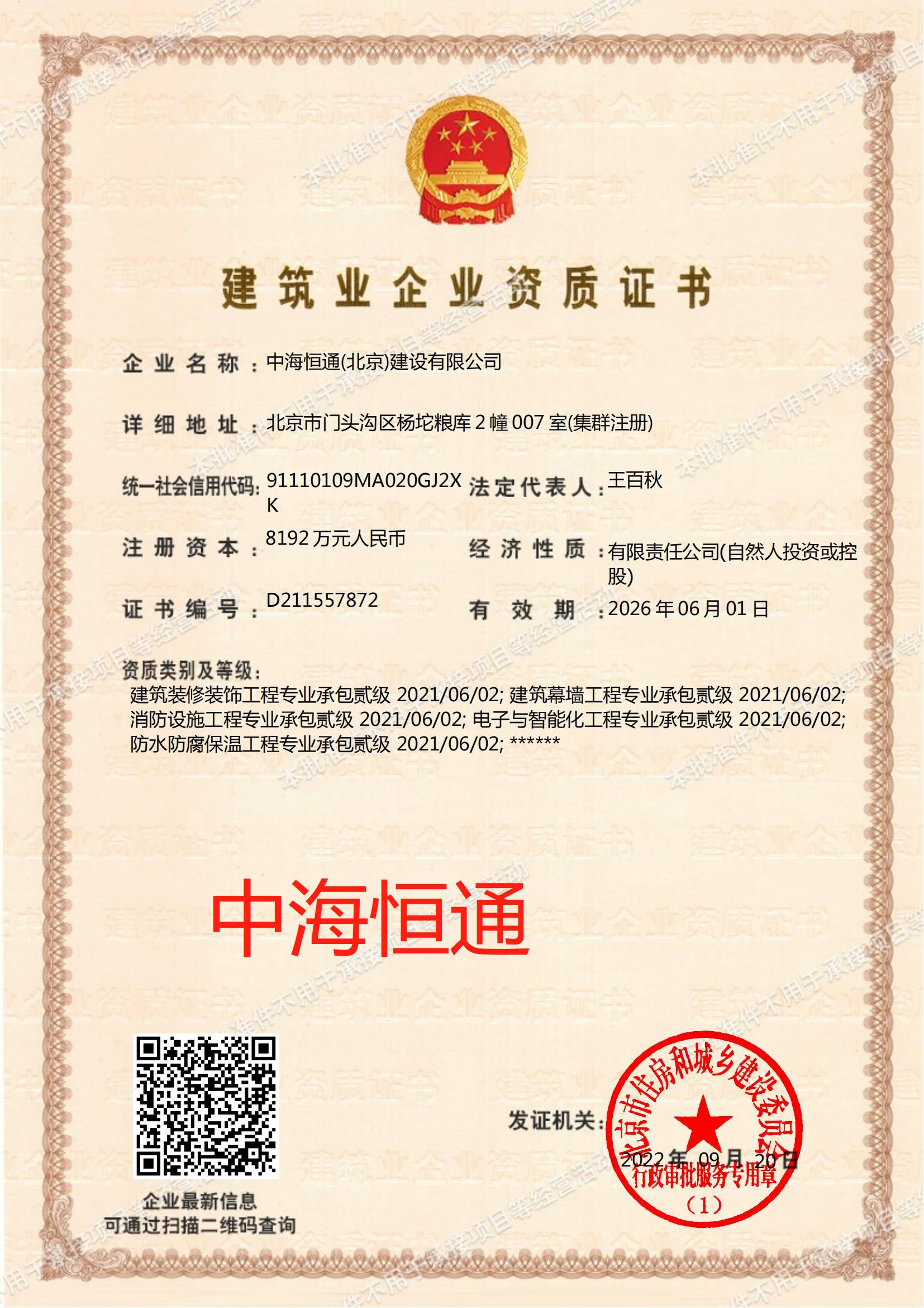 中海恒通(北京)建設有限公司歡迎您工程資質加盟分公司
