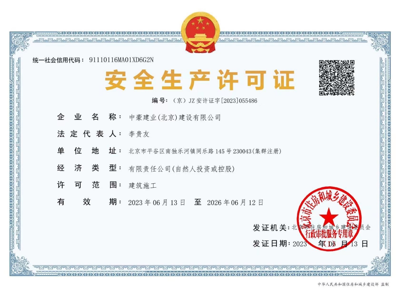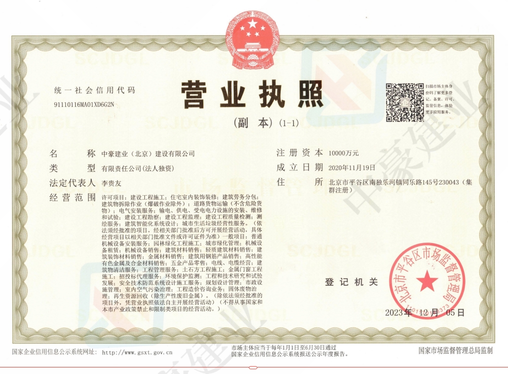 中豪建業(yè)(北京)建設(shè)有限公司資質(zhì)